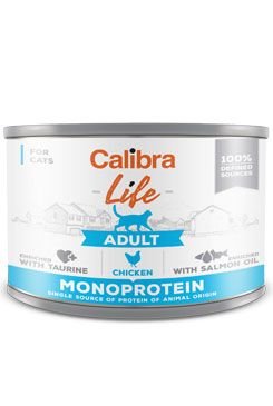 Calibra Cat Life Adult Chicken - receptura konzervy s kuřecím, která je určená pro dospělé kočky.