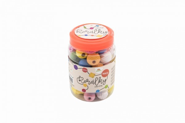 Dětské barevné korálky MAXI pro malé parádnice a nejen pro ně. V sadě najdete různé druhy a tvary korálků, které mají pestré a veselé barvy. Součástí jsou gumičky, na které si děti mohou navlékat korálky dle své fantazie, náramky a řetízky jsou poté roztahovací. Vzniknou tak jedinečné módní doplňky. Plastová dóza obsahuje 54 ks korálků. Dřevěné maxi korálky jsou vhodnou hračkou pro rozvoj dětské motoriky, trpělivosti i fantazie. Rozměry balení 7 x 11 x 7 cm. Vhodné pro děti od 3 let.