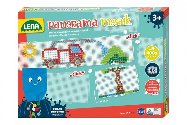 Čtyři připojitelné mosaikové desky s 400ks průhlednými kolíky o velikosti 10mm včetně úložného vaku. Fantazii se meze nekladou a mistrovská díla mohou začít vznikat! Jedna děrovaná deska má velikost: 38,5 x 25,5 cm. Rozměr balení: 33 x 24 x 4,5 cm Vhodné pro děti od 3 let číst celé