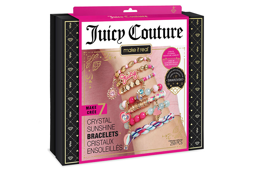 Balení obsahuje: elastickou šňůru, 4 barvy umělé semišové krajky, 5 barev bavlněné nitě, 223 různých korálků, 20 připevňovacích prstenů, 6 přívěsků s krystaly Swarovski®, instrukce. Vhodné od 8 let.
