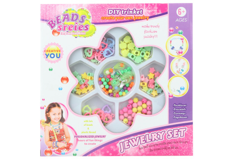 Plastové navlékací korálky různých barev a tvarů. Rozměr balení cca 23 x 23 x 3 cm. Věk 6+ číst celé