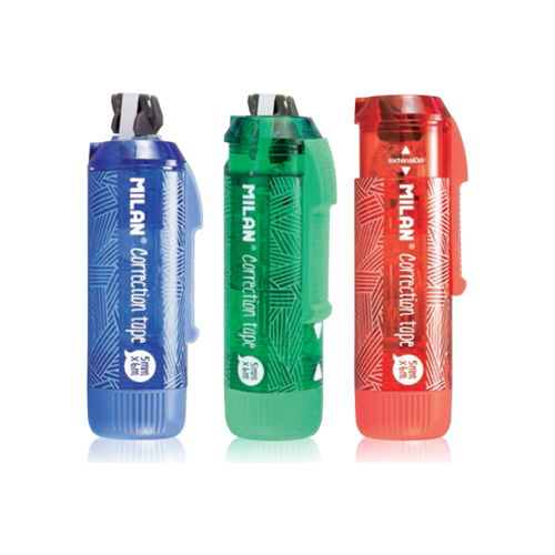 Korekčná páska s posuvným ochranným krytom. Vhodný pre pravákov aj ľavákov vďaka 360 ° rotácii hrotu. Rýchle, čisté a presné prekrytie. Korekčná páska je vhodná na všetkých druhoch papiera. Šírka 5 mm x 6 m dĺžka. Rozmanité farby: modrá, červená a zelená.