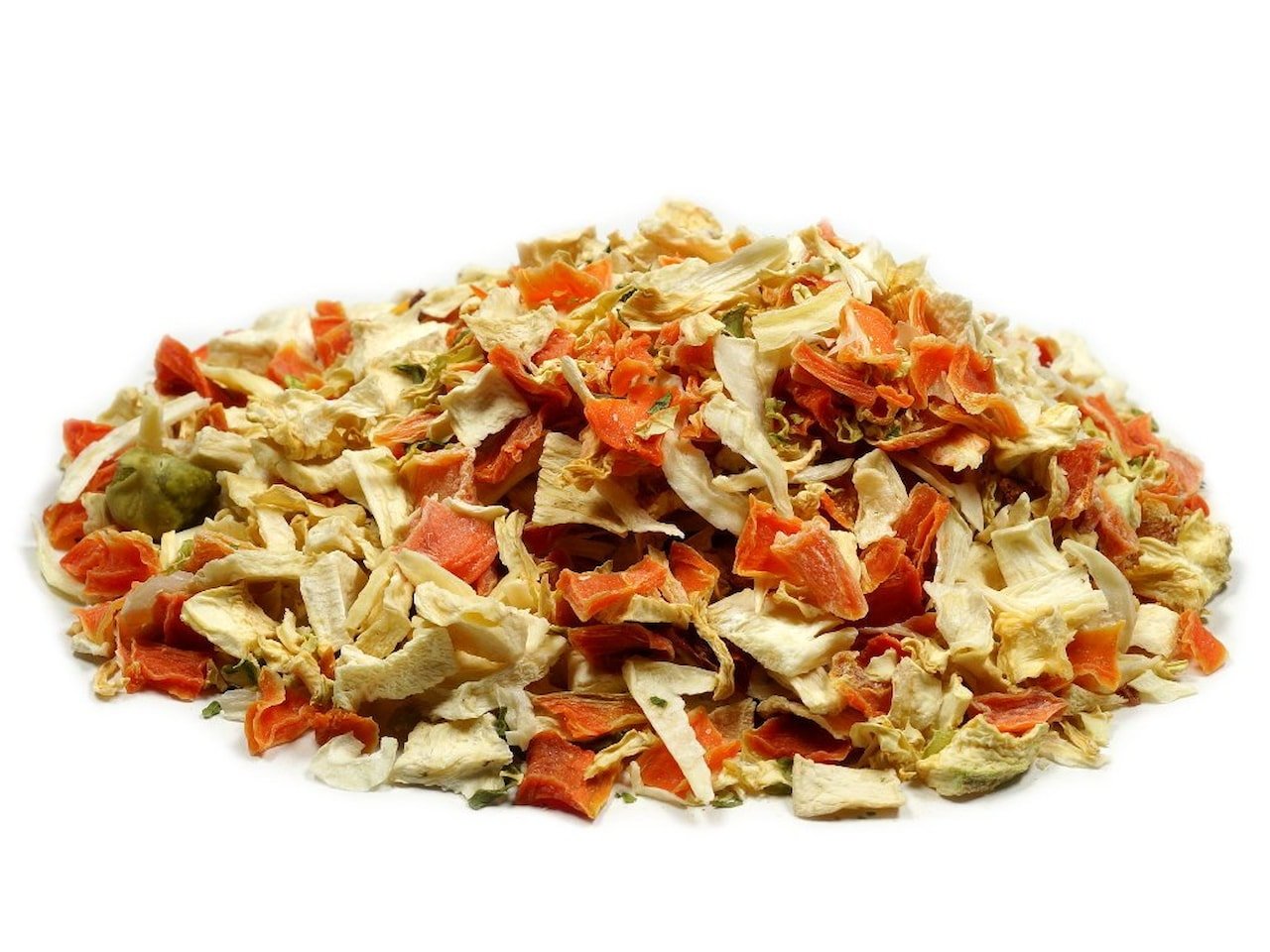 Vaření s kvalitní Směsí sušené zeleniny bez soli: Jde o směs kořenové a listové zeleniny, která je vynikající do různých druhů polévek, vývarů, omáček a šťáv pod pečené nebo dušené maso, nakládání svíčkové nebo zvěřiny, do rizot. Sušená zelenina je nakrájená na malé kousky, i díky tomu má široké použití. Velmi praktická je během zimy nebo když nemáte mnoho času a na cesty. Složení: