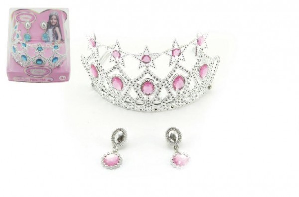 Sada princezna korunka + náušnice plast v krabičce karneval 2 druhy