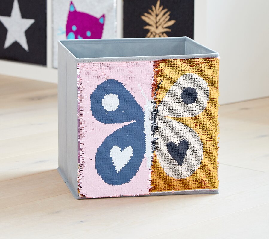 Otvorený Box na hračky s flitrami na prednej strane.