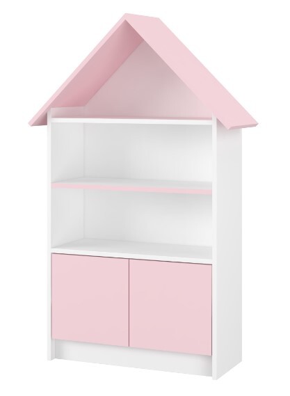 Dřevěná knihovna/skříň na hračky Nellys Domeček, bílá/růžová; bílá, růžová; MDF