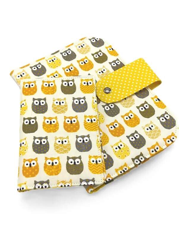 Sada plenkovníku / pouzdra na pleny a obalu na očkovací a zdravotní průkaz dítěte - Žluté sovy