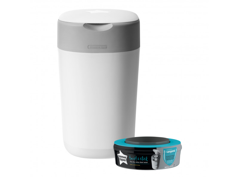Koš Sangenic Twist & Click umožňuje bezdotykové zabalení každé použité pleny pomocí unikátní technologie Twist & Click. Plena se otočením mechanismu pod víkem obalí do antibakteriální fólie s příjemnou citrónovou vůní, která likviduje 99% bakterií. Díky tomu koš spolehlivě chrání dětský pokoj před zápachem i bakteriemi a přispívá tak k čistému a svěžímu prostředí.