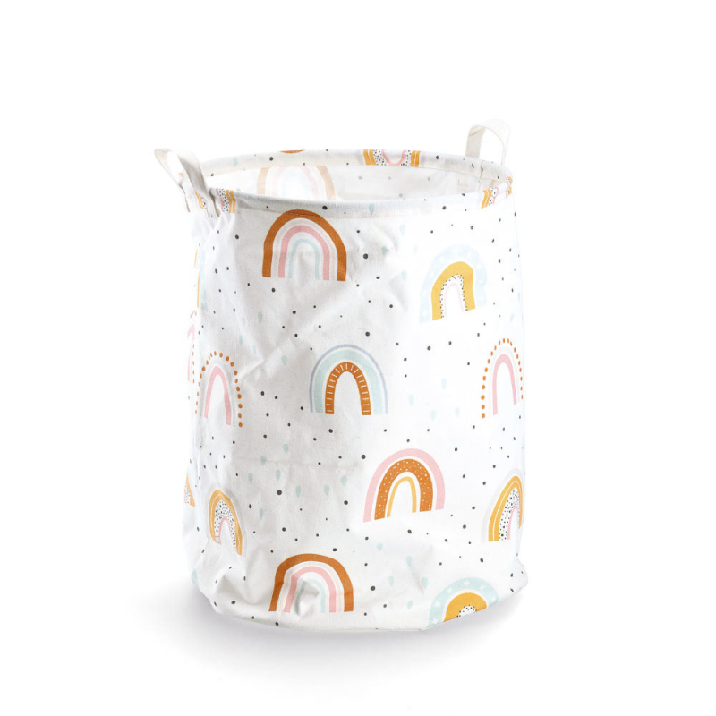 ZELLER Koš na špinavé prádlo kulatý, motiv Duha, plátěný 38x48cm