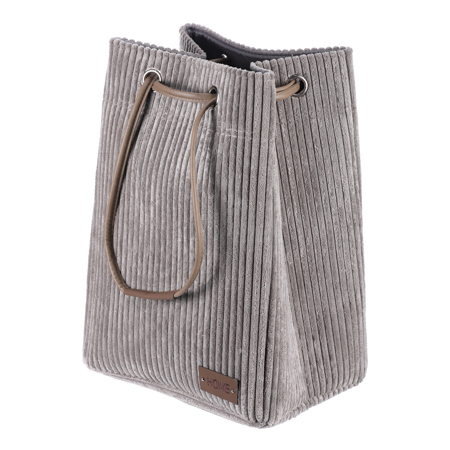 Látkový prádelní koš z manšestru v elegantní šedé barvě, se stahovacím uzávěrem pro chytré a efektivní ukrytí prádla. Stylový doplněk, který spojuje praktičnost s estetickým vzhledem.