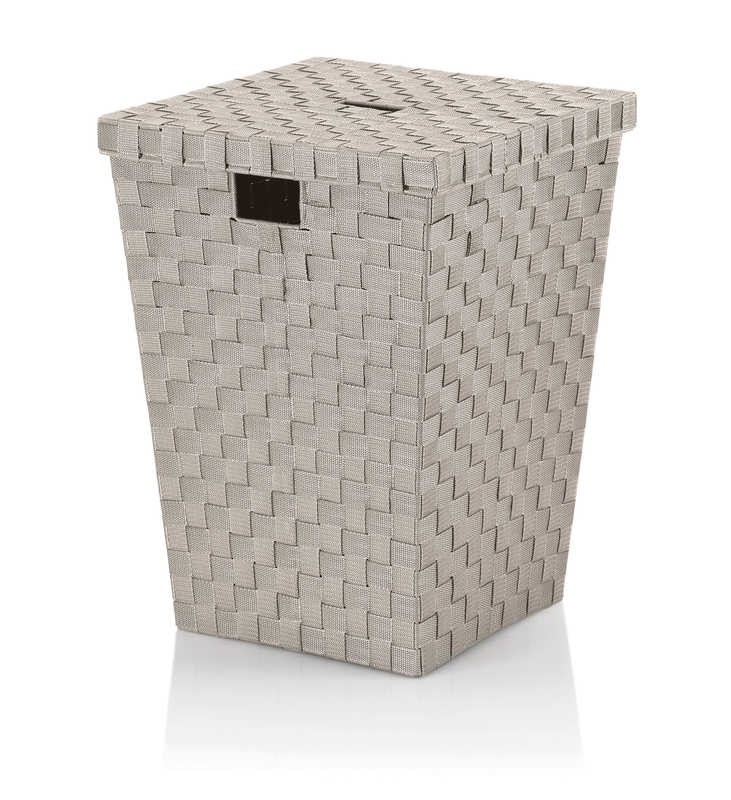 Praktický koš na prádlo Alvaro vyrobený ze stabilní PP vláknité pásky. Se dvěma držadly pro snadné přenášení. Prádelní box doplňuje víko, které je rovněž vyrobeno z PP vláknité pásky a má rukojeť. Rozměry: 40 x 40 x 52 cm. Barva stříbrná šedá.PP vláknová páska 40x40x52cm v