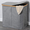 Koš je jednoduchý na sestavení a díky své robustní konstrukci vydrží každodenní používání. Dvě oddělené přihrádky umožňují snadné a rychlé třídění prádla, například na bílé a barevné, což výrazně usnadňuje a urychluje praní. Bambusový rám je příjemný na dotek, zajišťuje pevnost a stabilitu, takže koš nepodléhá deformacím ani při plném naplnění.