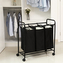 Songmics Koš na tříděné prádlo 3x44l, pojízdný, se třemi koši, černý
