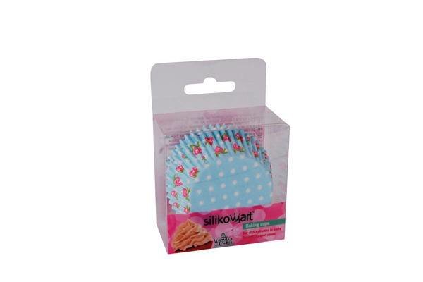 Modré papírové košíčky s dekorem růží na pečení i servírování muffinů a cupcake. číst celé