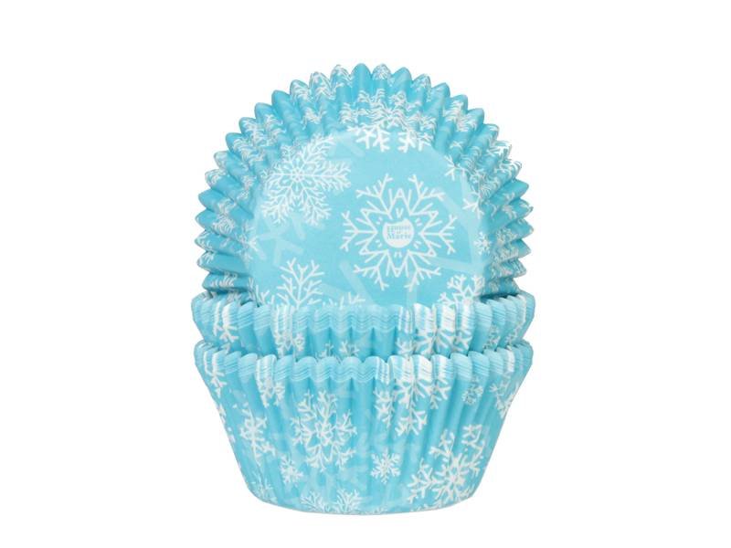 Košíčky na muffiny modré, sněhové vločky 50x33 mm - House of Marie