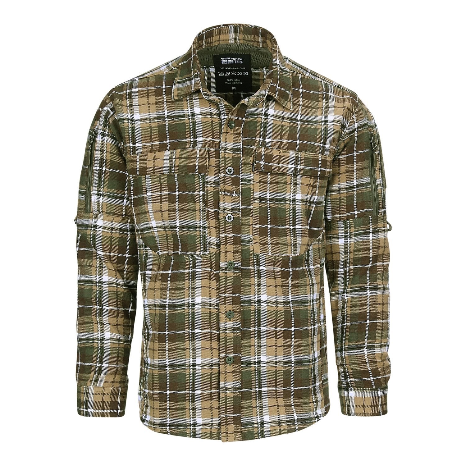 Lehká a prodyšná košile CONTRACTOR od značky TF2215. Košile je vyrobená z odolné bavlny, která je příjemná na dotek. Na košili naleznete celkem šest kapes, dva velké panely suchého zipu a tkalouny sloužící k fixaci ohrnutých rukávů.