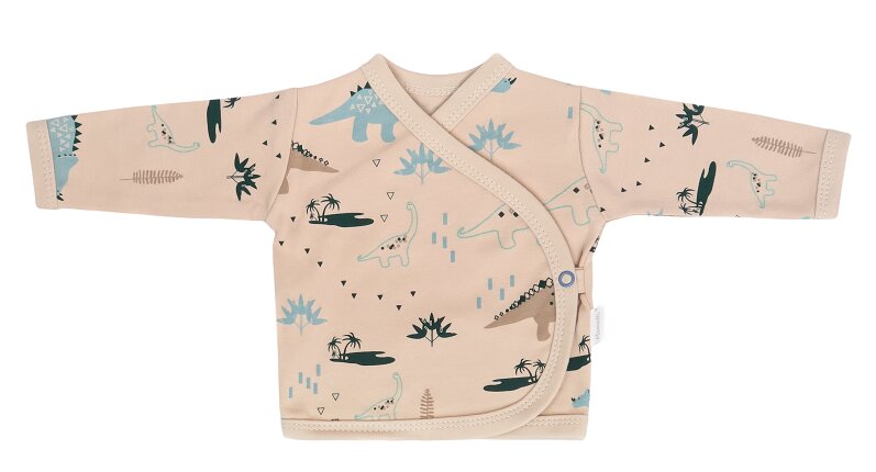 Mamatti Kojenecká bavlněná košilka zap. bokem, Dinosaurus, krémová s potiskem, vel. 62; 62 (2-3m)