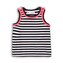 Dívčí proužkované tílko v černobílé barvě s růžovými volánky kolem lemu. číst celé