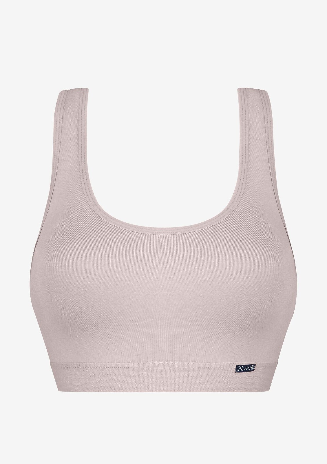 Delikatny top- miękka bambusowa dzianina- bez fiszbin- wyjmowane wkładki usztywniające- z tyłu ozdobne, krzyżujące się paski- ramiączka bez regulacji długości- wkładany przez głowę