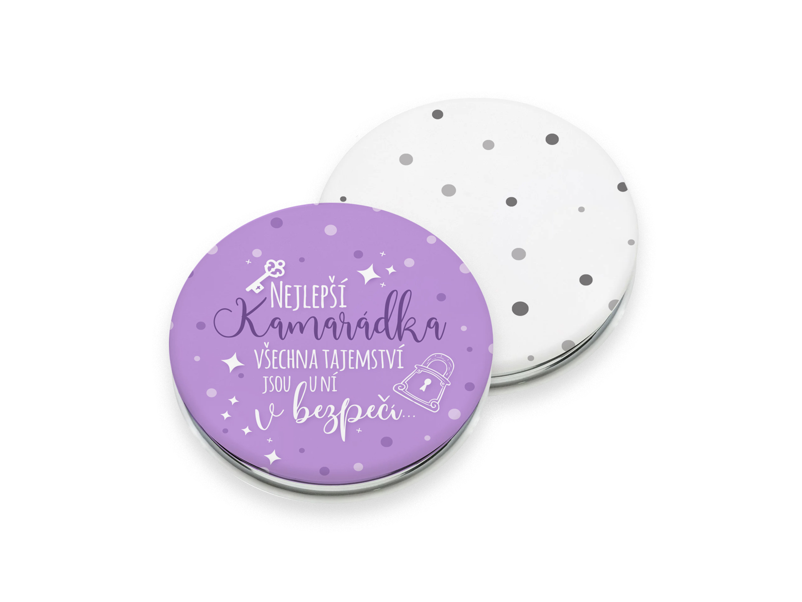 Dámské zrcátko s věnováním „nejlepší kamarádka - všechna tajemství jsou u ní v bezpečí“.