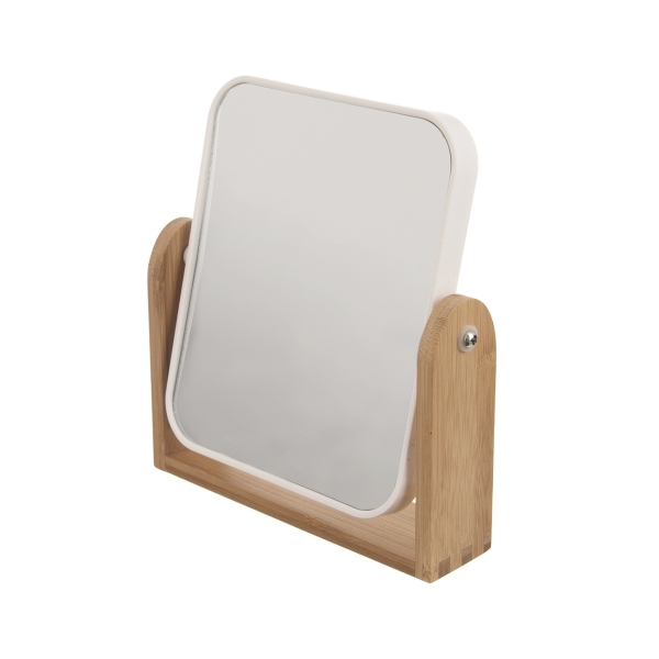 Zrcadlo je nejen praktické, ale i elegantní díky modernímu vzhledu a kvalitnímu provedení. Stojánek zajistí stabilitu na každém toaletním stolku či koupelnové poličce. Díky použití materiálů jako plast PS, bambus, sklo a kov je odolné a zároveň stylové.