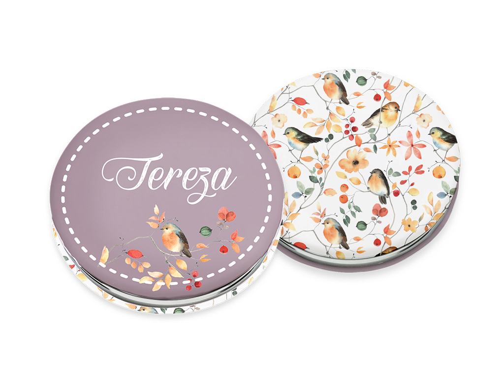 Personalizace jménem dává zrcátku jedinečný charakter, díky čemuž je vhodné nejen pro každodenní použití, ale také jako originální dárek k narozeninám, svátku nebo jiným příležitostem - oslavte jedinečnost obdarované osoby originálním způsobem.