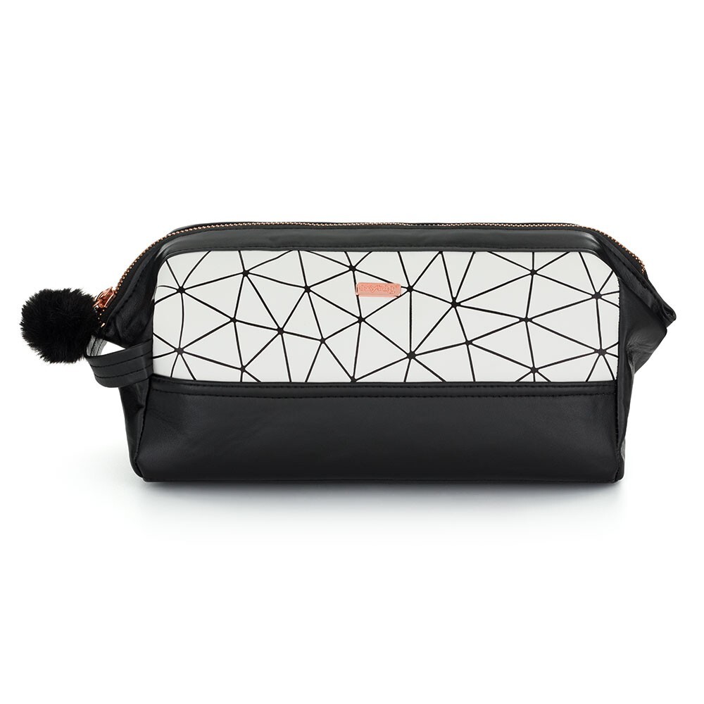 Větší cestovní kosmetická taška v černobílém provedení. Vhodná k uskladnění toaletních a kosmetických potřeb. číst celé