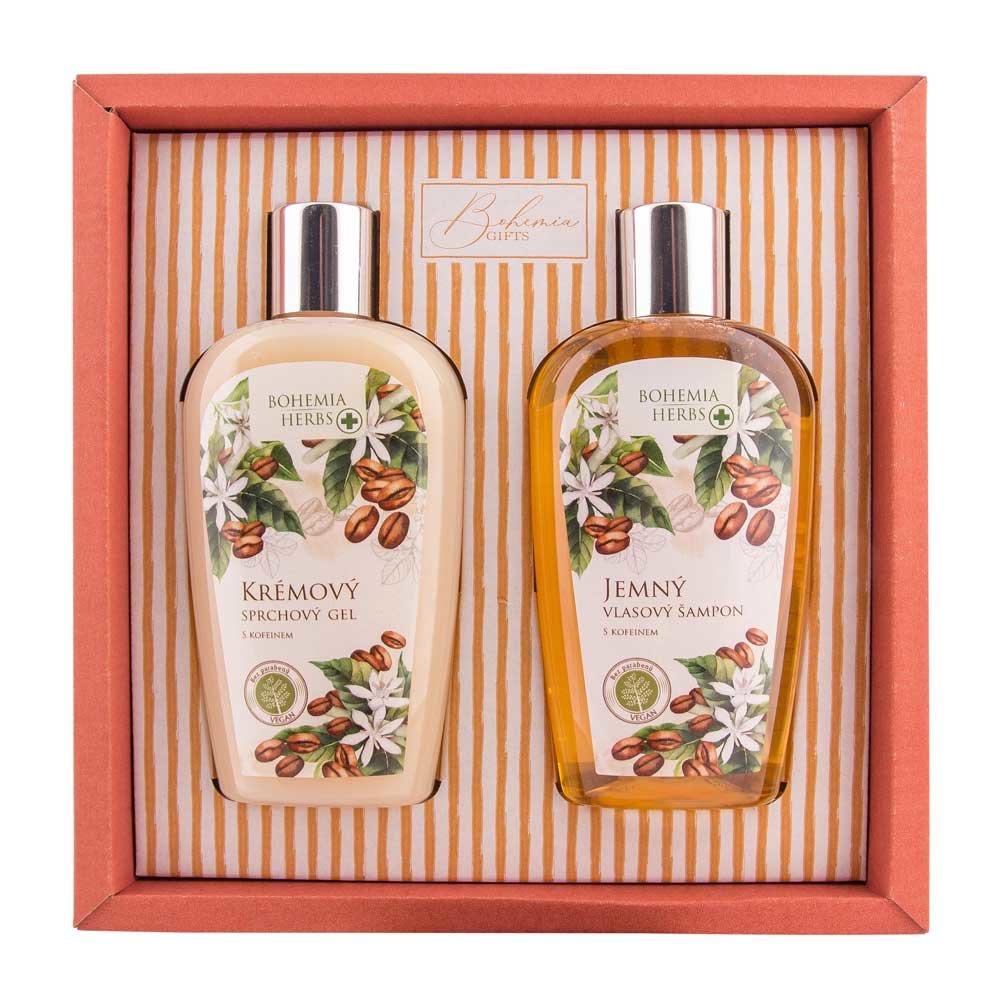 Kosmetická sada Kofein je krásný dárek pro muže i ženy. Kosmetický balíček s kofeinem obsahuje sprchový gel 250 ml a vlasový šampon 250 ml.