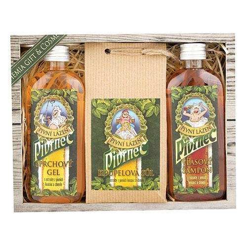 Dárkový kosmetický balíček pivní kosmetiky Pivrnec - sprchový gel 100 ml, koupelová sůl 150 g a vlasový šampon 100 ml