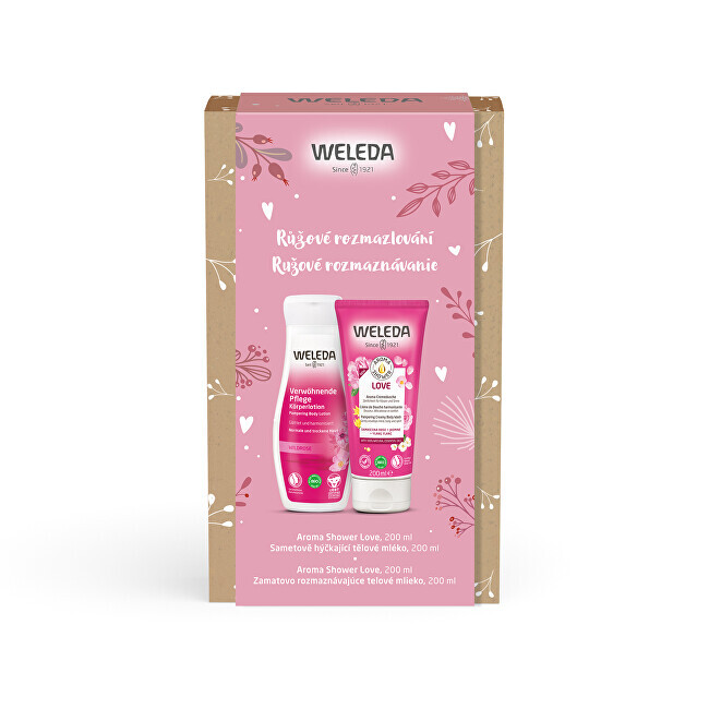Věnujte chvíle rozmazlování a pohody. Růžový set je jako pozvánka do kouzelné zahrady, kde kromě růží voní také ylang-ylang a jasmín, květiny milované všemi ženami. Zatímco sprchový krém pokožku jemně umyje a připraví na další péči, tělové mléko se postará o sametově hebký pocit. 100% certifikovaná přírodní a BIO kosmetika dodržující etické principy při získávání surovin. Sada obsahuje: Rozmazlující sprchový krém Aroma Shower Love (Pampering Creamy Body Wash) 200 ml Sametově hýčkající tělové mléko (Pampering Body Lotion) 200 ml Popis: Harmonizační tělové mléko s vysoce regeneračním olejem ze semen růže muškátové výrazně zlepšuje pružnost a hydrataci pokožky.