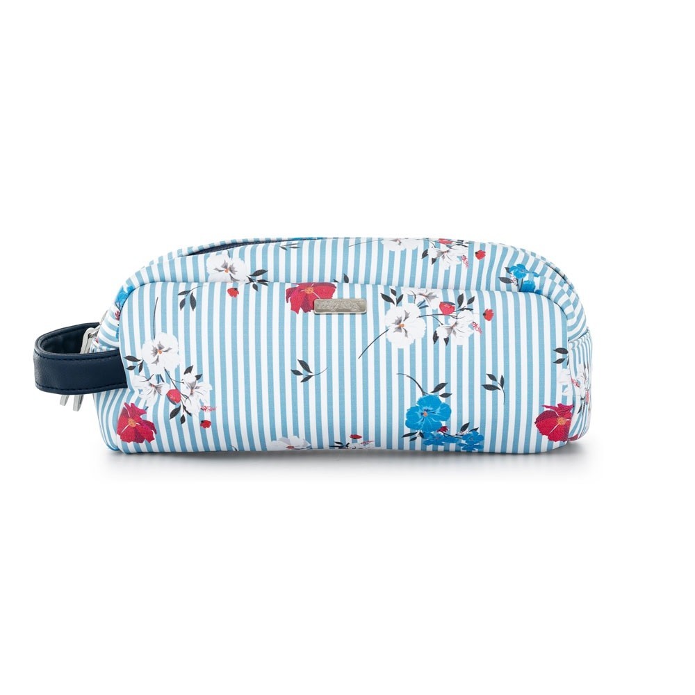 Menší cestovní kosmetická taška v květinovém provedení. Vhodná k uskladnění drobných toaletních a kosmetických potřeb.