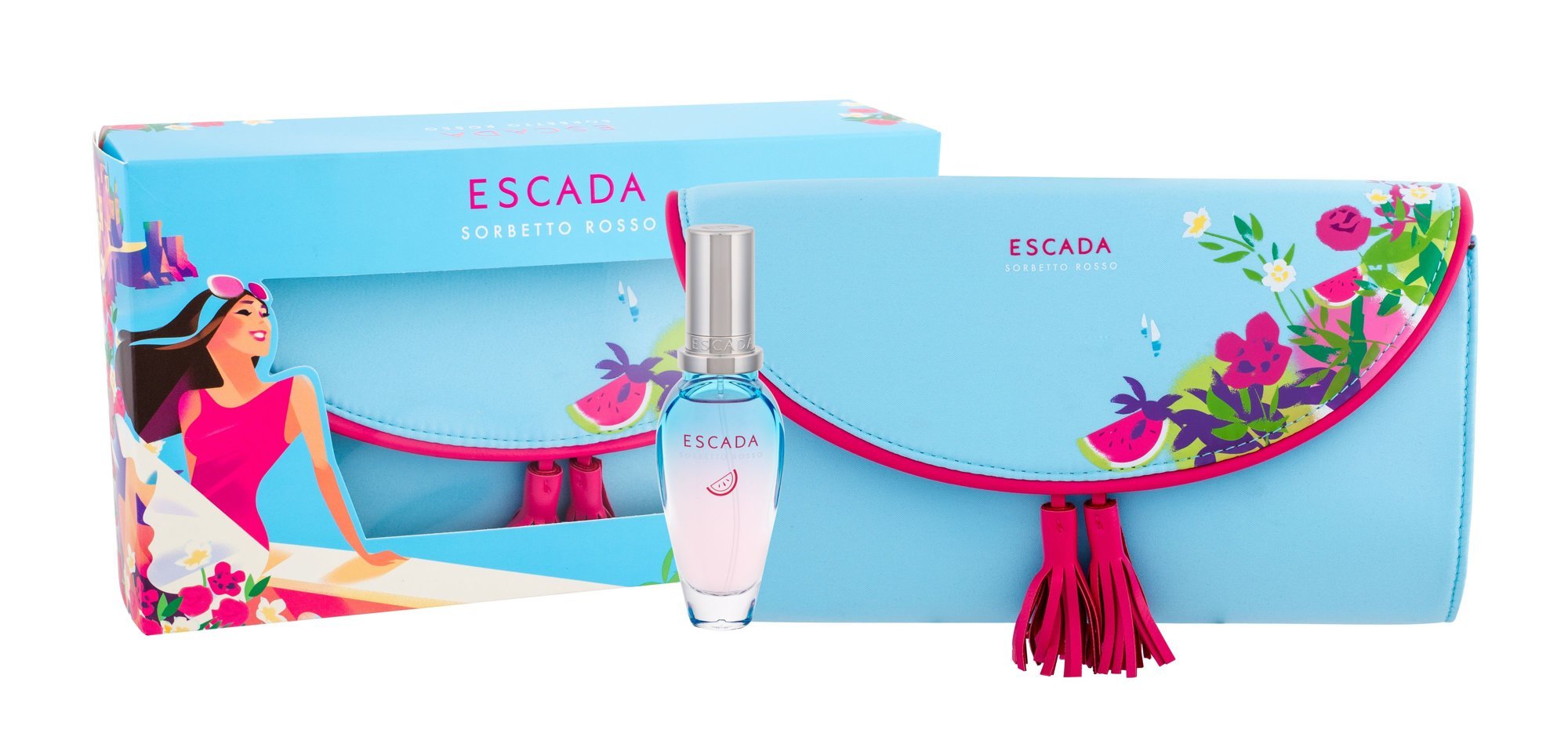 Vůně **Escada Sorbetto Rosso** - novinka pro rok 2018. Představte si moře, slunné italské pobřeží, vítr ve vlasech, letní ovocné drinky a přesně taková je dámská vůně Sorbetto Rosso. Je určena pro ženy, které milují léto strávené u moře, odpočinek na jachtě, projížďky na skútru a nevinné flirtování u skleničky dobrého koktejlu. Vůně se otvírá šťavnatou kompozicí složenou z hruškového džusu a citrusů, kterou ovane lehký závan z calone. Srdce je inspirované mořem, které zastupují vodní tóny a sůl. Symfonie moře je doplněna osvěžujícím vodním melounem oslazeným o květ tiaré, který jde ruku v ruce s pralinkovými tóny v závěru, společně s pižmem a ambrou. Zavřete oči a přeneste se na pobřeží Amalfi s toaletní vodou *Escada Sorbetto Rosso.*