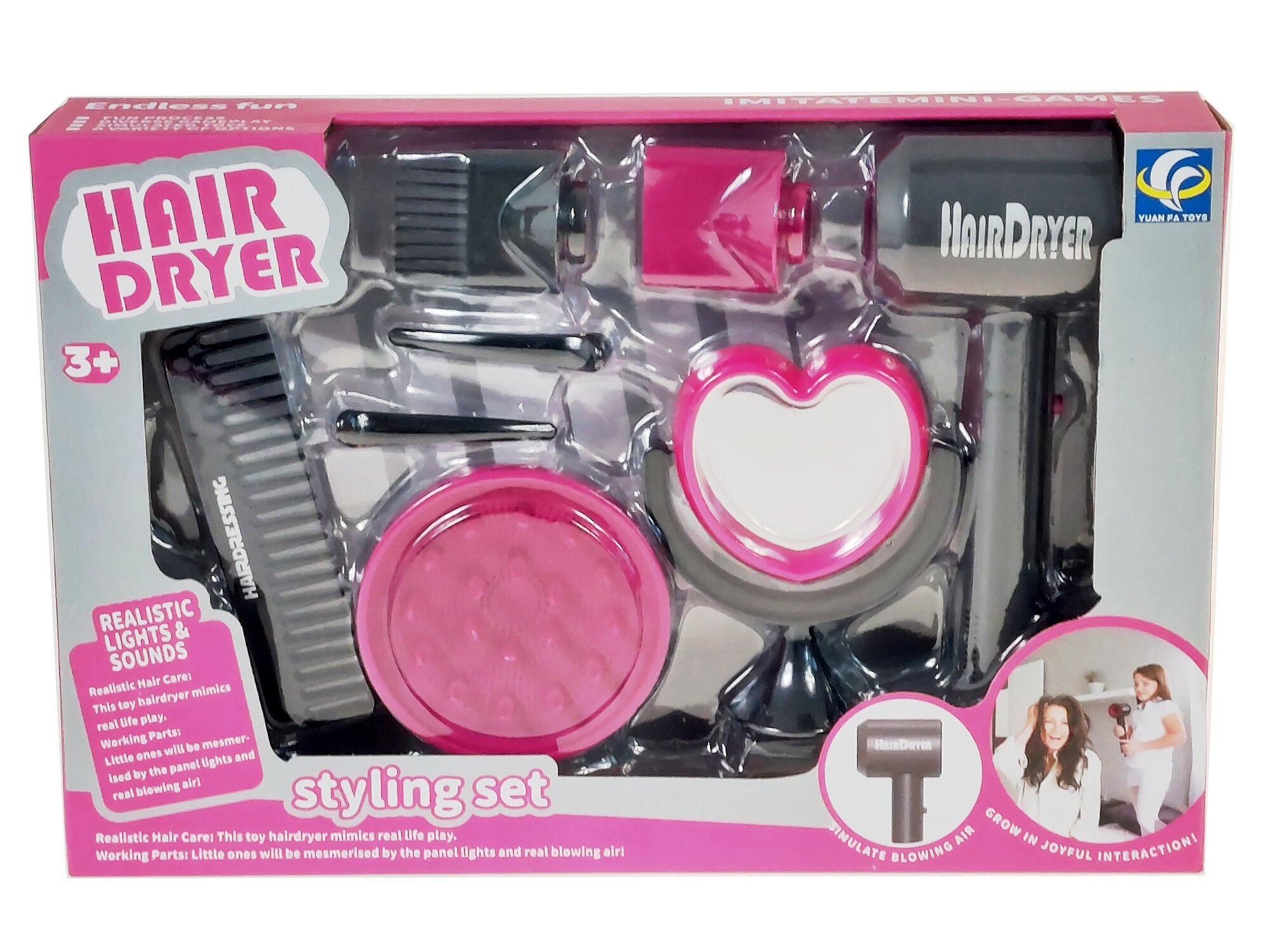 Kosmetický set s fénem na baterie; 39x26,5x7cm, 2xAA nejsou součástí číst celé