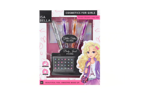 Tetovací sada pro holčičky. Obsahuje 4 třpytivá tetovací pera a doplňky. Rozměry balení cca 17x21x2,5 cm. Věk 6+ číst celé