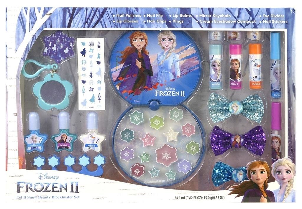 Mix wzorów, towar wysyłany losowo.Zestaw kosmetyków dla dzieci FrozenZestaw Frozen, który zawiera lustro, 1 searator do paznokci, 3 balsamy do ust, 3 pierścienie, 3 lakiery do paznokci, 3 spinki, 2 błyszczyki do ust, 1 arkusz naklejek, kompaktowy okrągły zestaw z kremowymi cieniami do powiek. číst celé