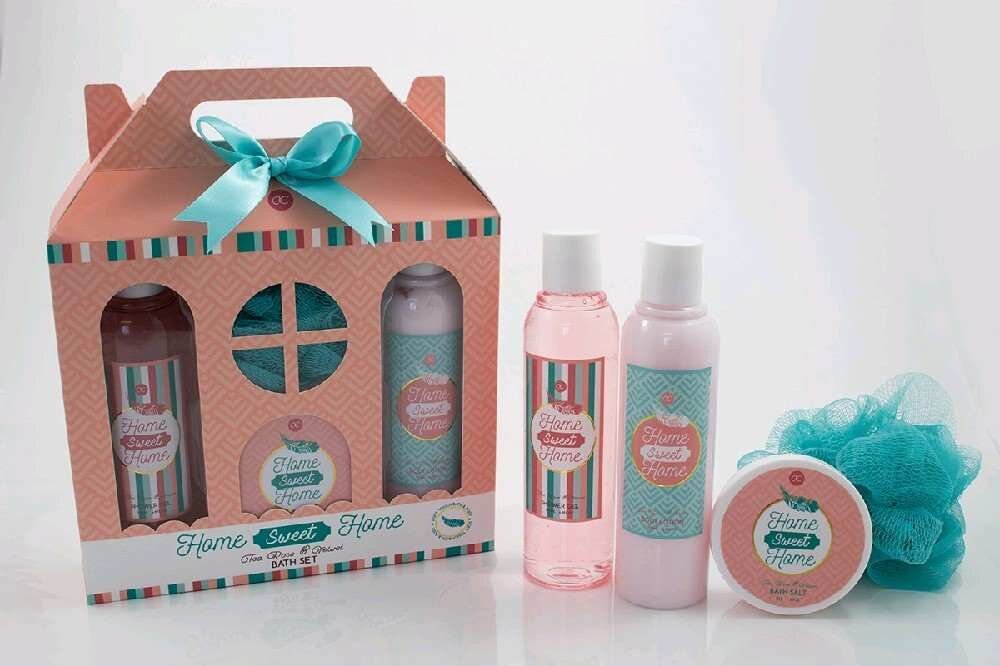SET koupelový v dárkovém boxíku HOME SWEET HOME 3+1, vůně bílá růže-velvet ACCENTRA