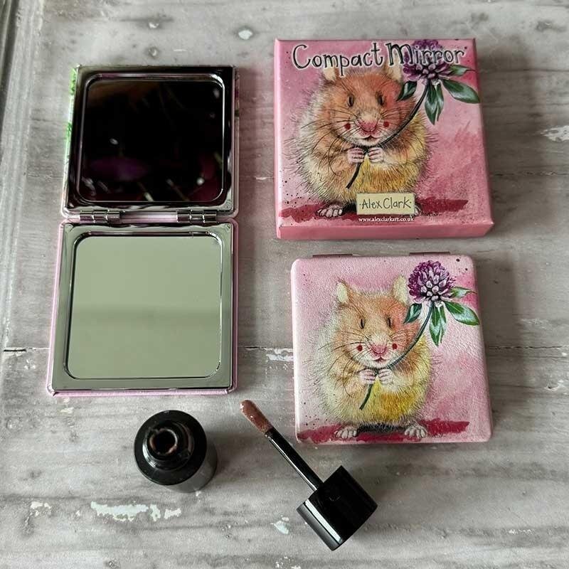To śliczne kompaktowe lusterko jest na tyle poręczne, że zmieści się nawet w małej torebce bądź kieszeni. Zawiera dwie idealne do poprawek strony, w tym jedną powiększającą, która umożliwia precyzyjną aplikację. Zapakowane w ilustrowane pudełko prezentowe. Zapinane na zawiasy i ukryty magnes. Wykonane ze skóry wegańskiej, metalu i szkła. Rozmiar: 70 mm x 70 mm.