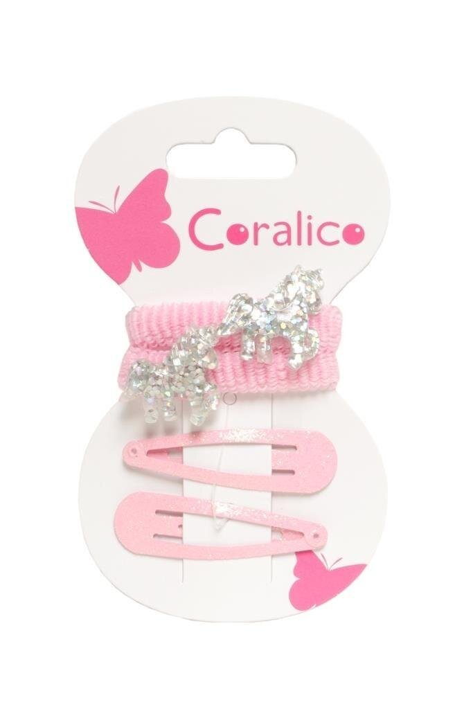 Zestaw frotek i spinek w kolorze różowym. Motyw konika na frotkach wykonany z mieniącego się tworzywa číst celé