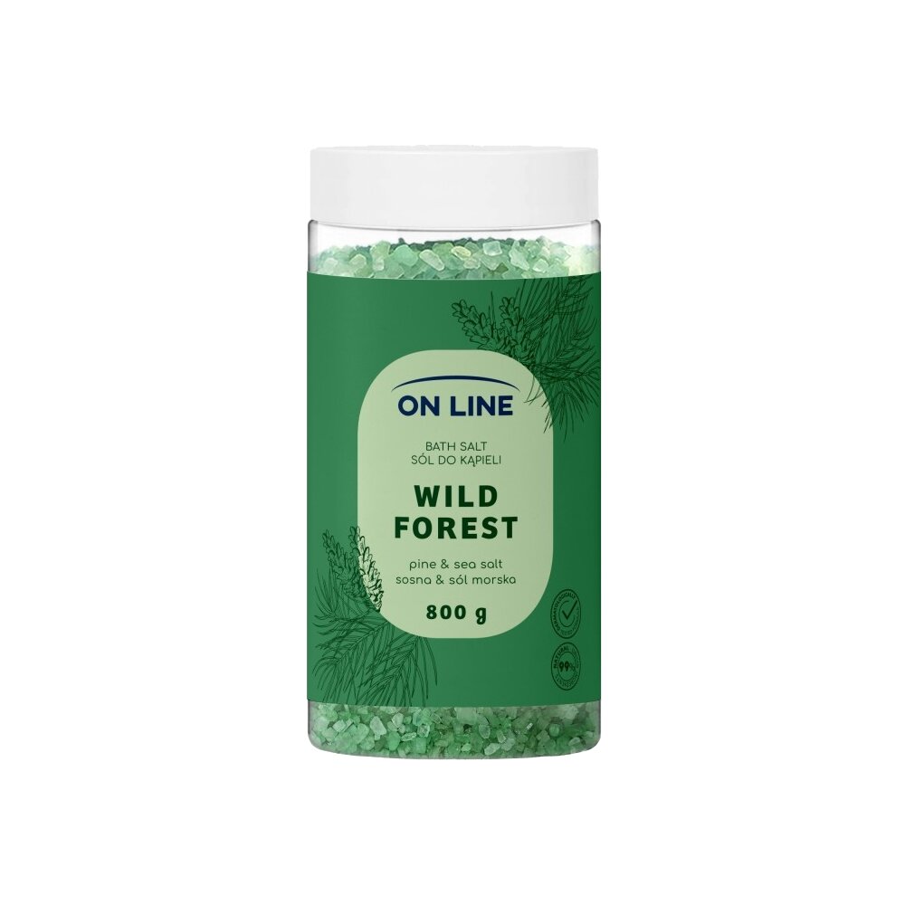 On Line Wild Forest koupelová sůl obohacená extraktem z jehličí borovice a mořskou solí z Mrtvého moře.