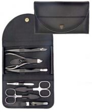 Manikúrní sada v pouzdře z pravé kůže. Povrchová úprava - nikl.