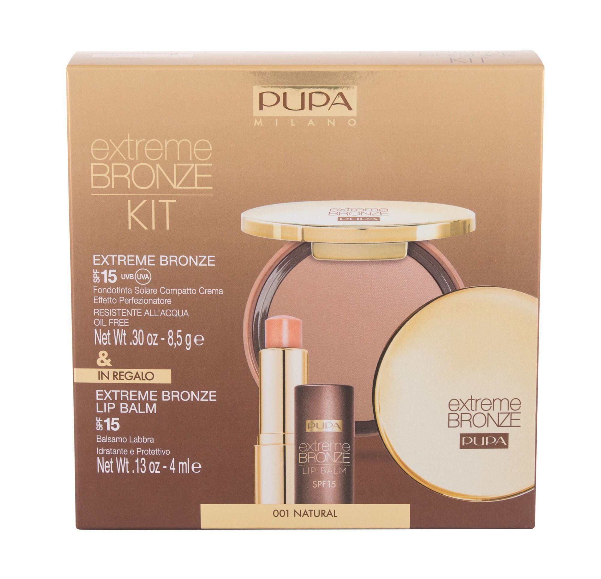 Pupa Extreme Bronze kompaktní make-up krém Extreme Bronze Foundation Waterproof SPF15 8,5 g + balzám na rty Extreme Bronze Lip Balm SPF15 4 ml