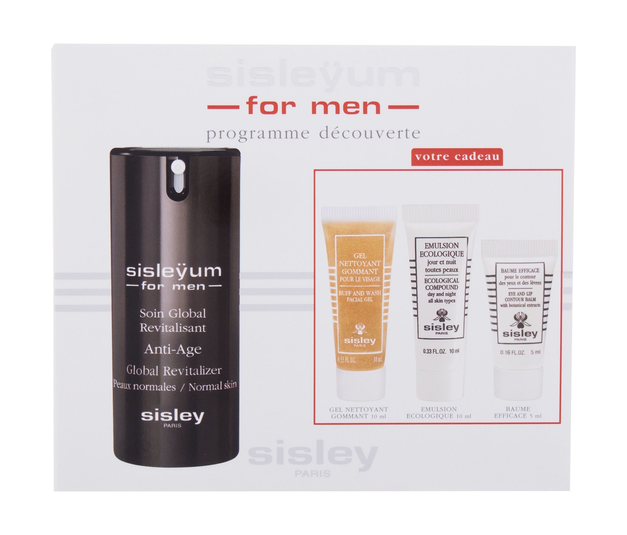 Sisley Sisleyum For Men denní pleťový krém Sisleyum For Men Anti-age Global Revitalizer 50 ml + exfoliační gel Buff And Wash Facial Gel 10 ml + pleťová emulze Ecological Compound 10 ml + balzám na oči a rty Eye And Lip Contour Balm 5 ml