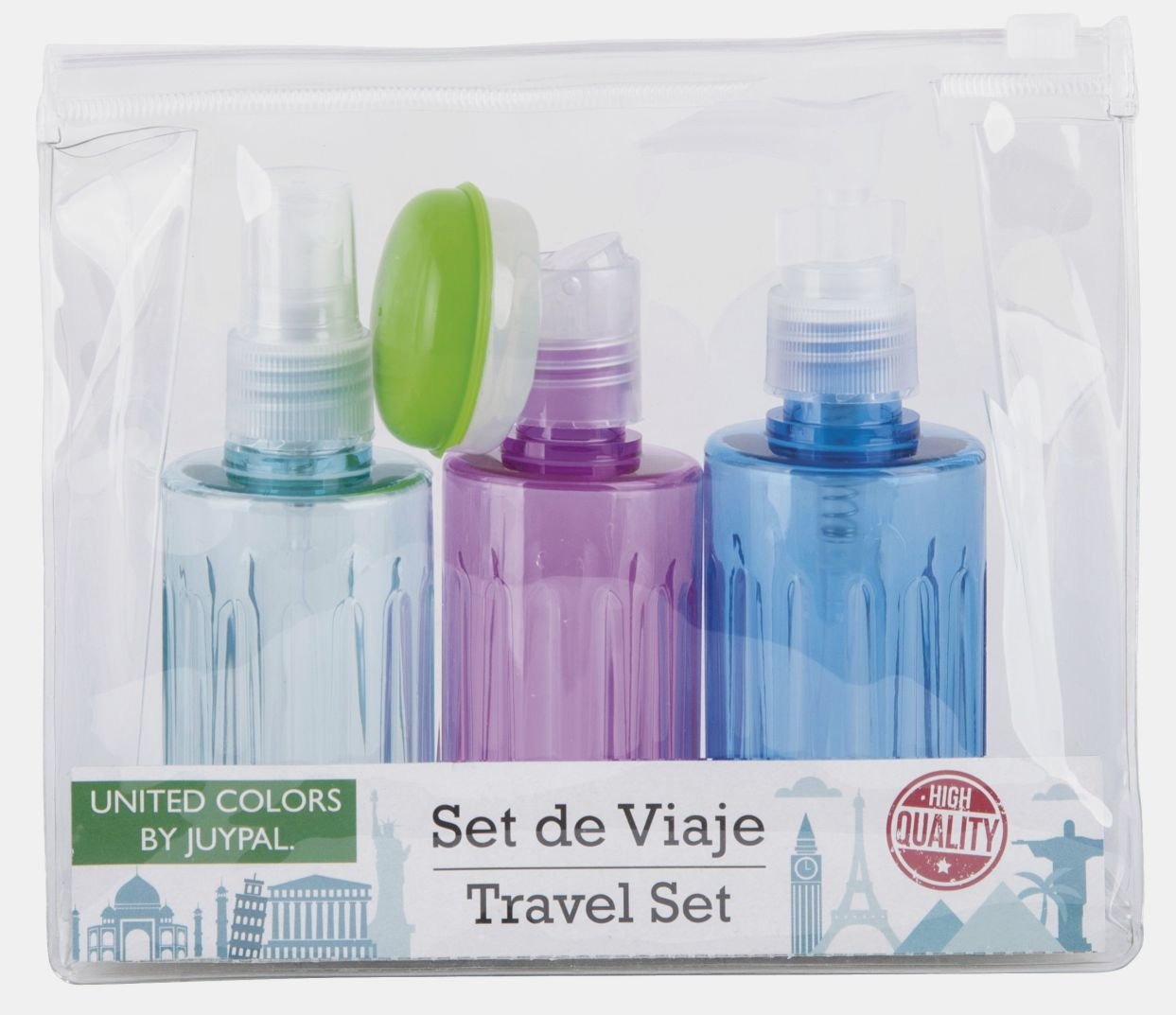 Cestovní sada 4 ks plnitelných obalů (75 ml) na kosmetiku v uzavíratelném pouzdře. Materiál - plast. číst celé