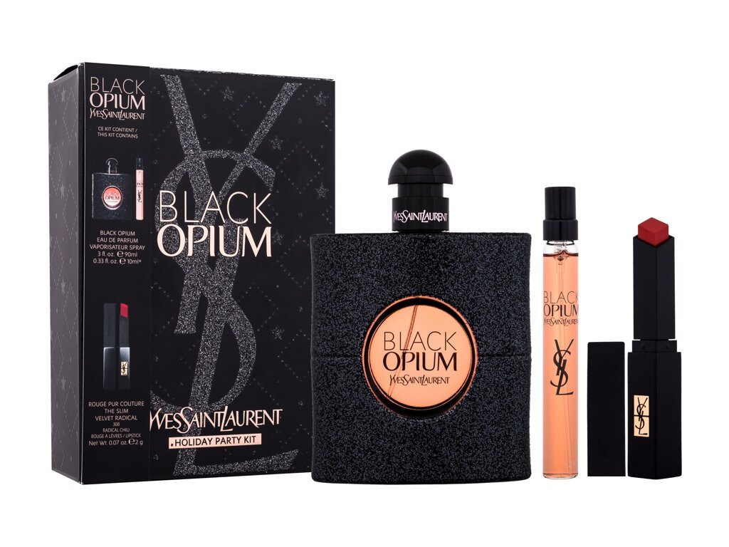Yves Saint Laurent Black Opium parfémovaná voda 90 ml + parfémovaná voda 10 ml + rtěnka Rouge Pur Couture 2 g 308