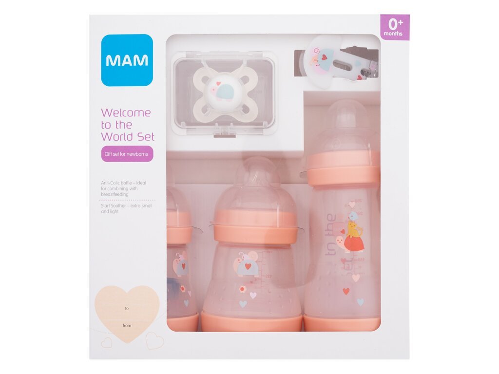 MAM Welcome To The World Set kojenecká láhev Anti-Colic 160 ml 2 ks + kojenecká láhev Anti-Colic 260 ml 1 ks + dudlík Start 1 ks + stužka na dudlík 1 ks