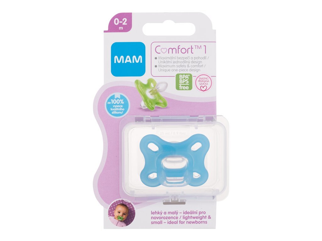 MAM Comfort Dudlík 1 Silicone Pacifier 1 ks 0-2m Blue pro děti