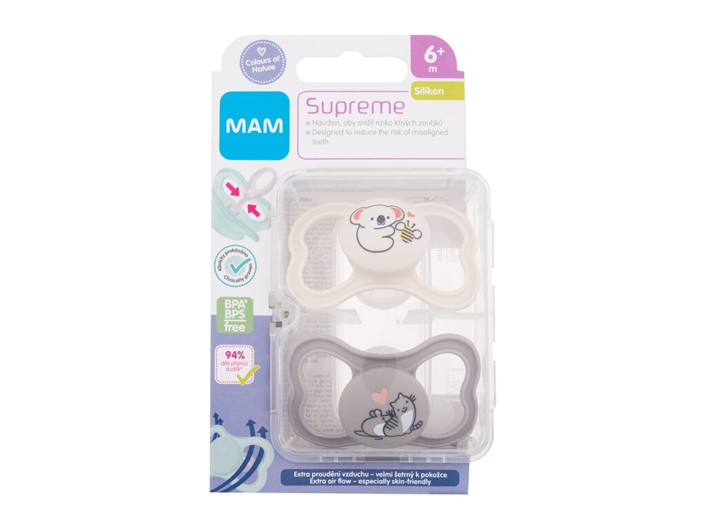MAM Supreme Dudlík Silicone Pacifier 2 ks 6m+ White & Grey pro děti