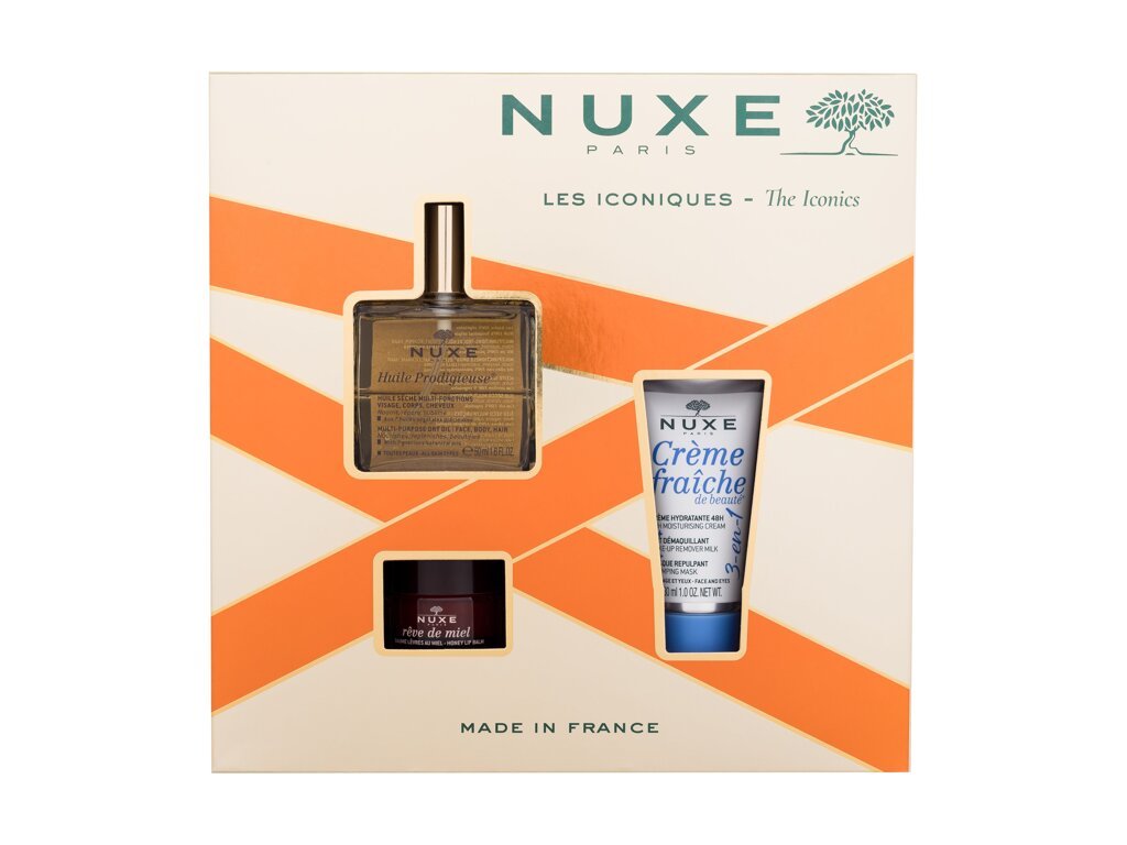 NUXE The Iconics suchý olej Huile Prodigieuse 50 ml + pleťový krém Créme Fraiche de Beauté 3-In-1 30 ml + balzám na rty Reve de Miel Honey 15 g