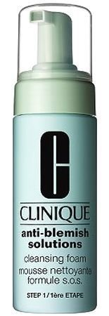 Čistící pleťová pěna **Clinique Anti Blemish Solutions Cleansing Foam vhodná pro všchny typy pleti**. Jemná pěna čistí a pomáhá v prevenci proti akné. Pleť zbavuje nečistot a nadbytečného mazu. Čistí ucpané póry. Uklidňuje a zjemňuje pokožku, zbavuje ji zarudnutí. **Použití**: Aplikujte na navlhčenou pleť krouživými pohyby. Poté opláchněte.