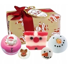 Vánoční koupelová dárková sada plná vůní a esenciálních olejů obsahuje 2x koupelová šumivá bomba 2x máslová koupelová kulička a 1x glycerinové mýdlo